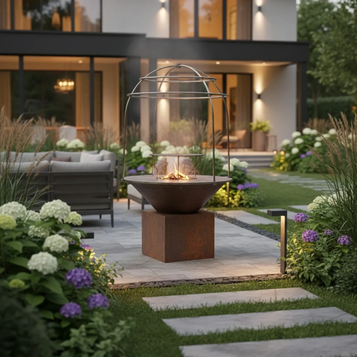 2 mm Corten çelik gövdesi ile sağlamlık ve dayanıklılık vadeden Açık Mangal, 150 cm pişirme alanı sayesinde aileniz ve dostlarınızla keyifli mangallar yapmanıza imkan verir.